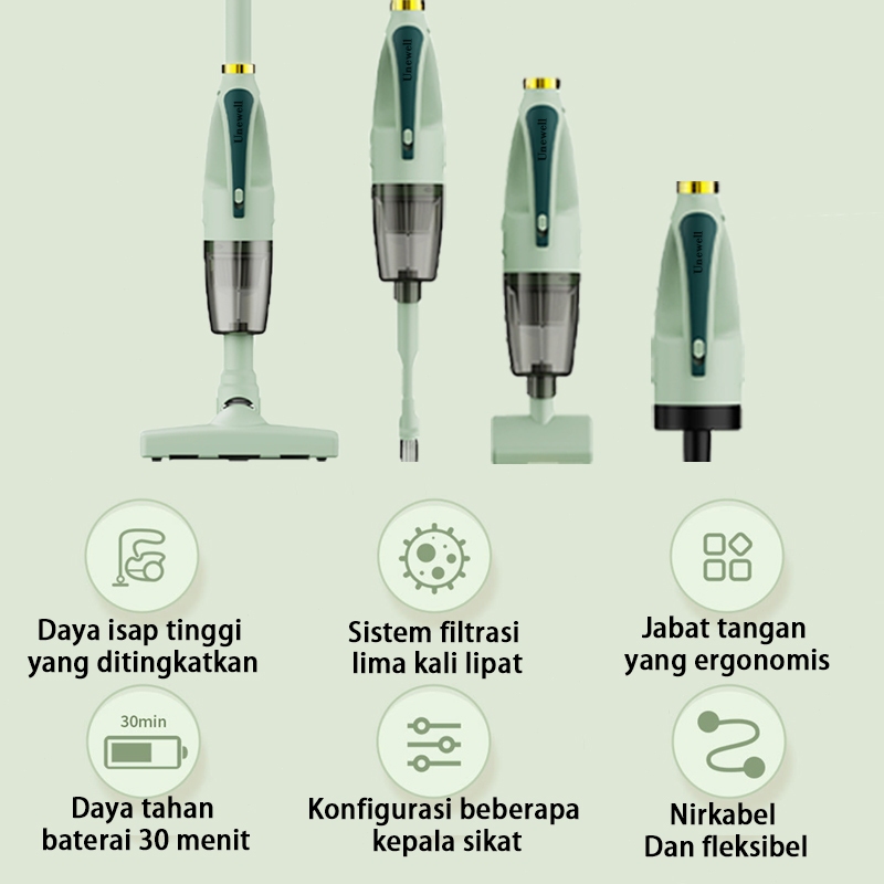penyedot debu Unewell 2025 Vacum Cleaner Penyedot Debu 30000Pa 7.4V 9 IN 1 Cordless Portable Mobil/Rumah