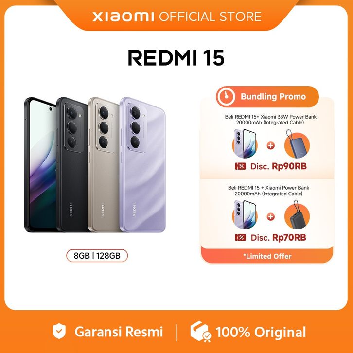 Xiaomi Redmi 15 (8GB/128GB) (8GB/256GB) Baterai besar 7000mAh dengan pengisian daya 33W | Ekspansi RAM hingga 16GB