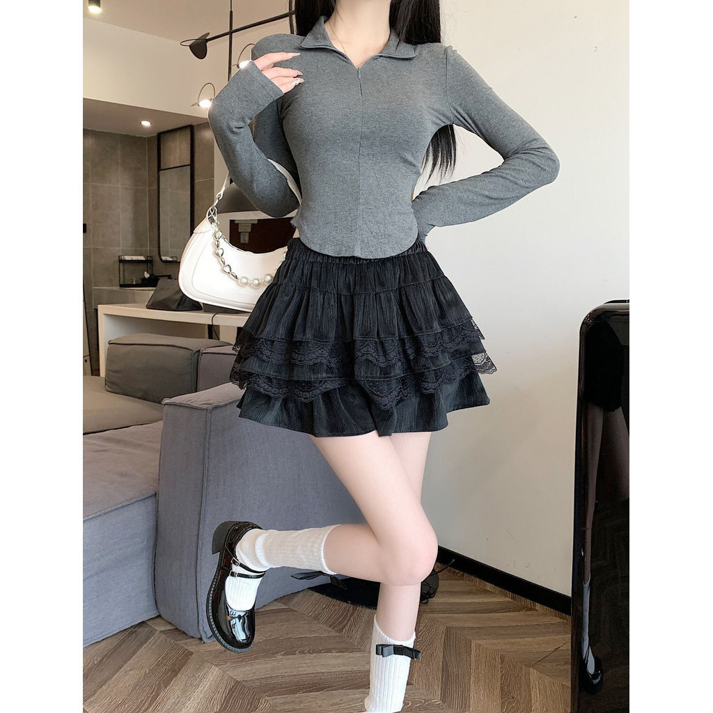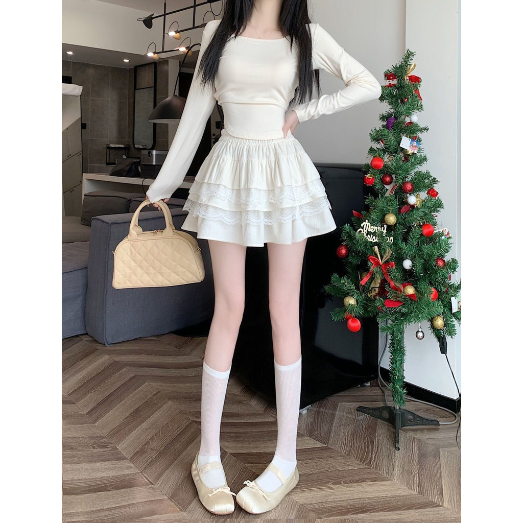 Rok Kue Jahitan Renda Gaya Lembut Gaya Korea Rok Pendek Rok Pendek Rok Bengkak Berlapis Serbaguna Pelangsing Pinggang Ti