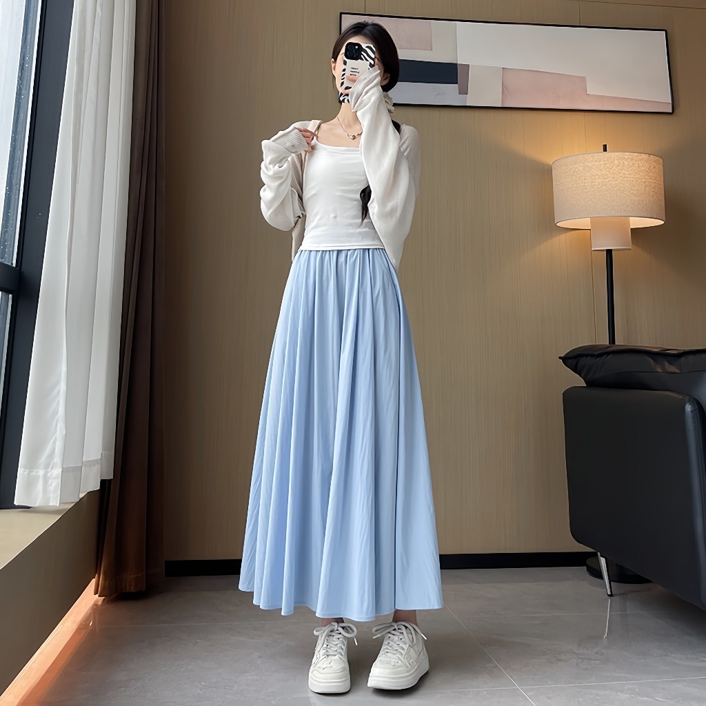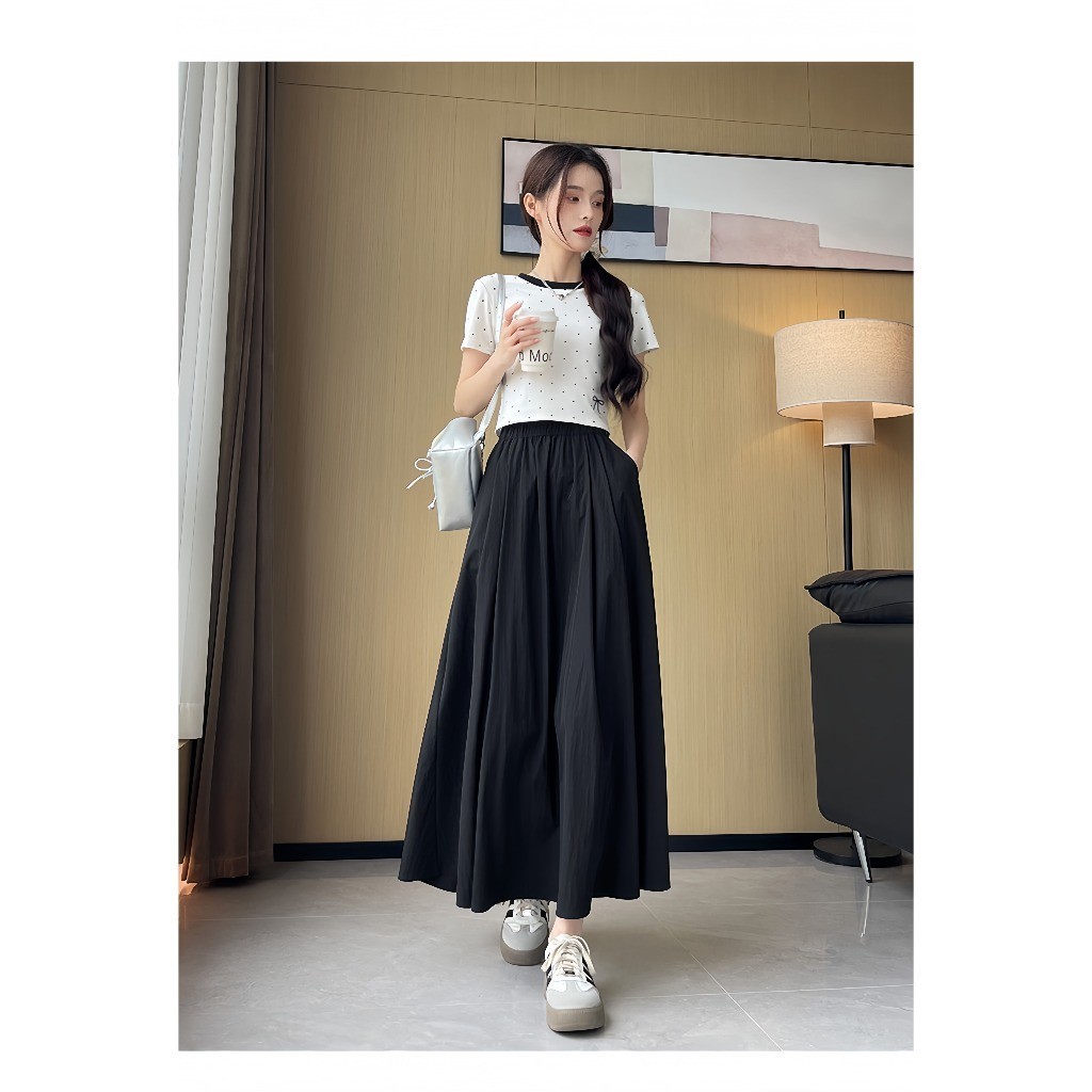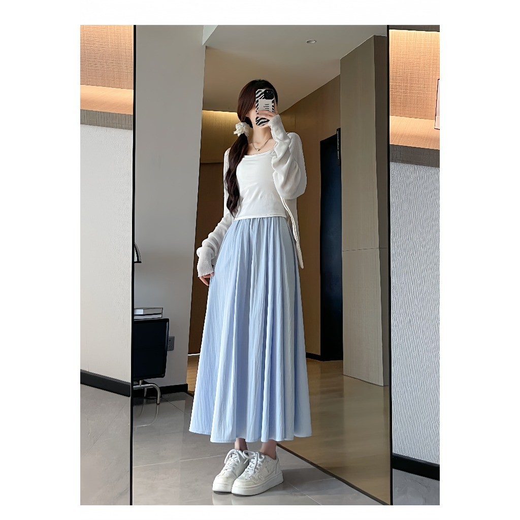 Rok Maxi A-Line Wanita Kekinian – Model Korea 2025, High Waist Ramping, Gaya Simple Tapi Mewah