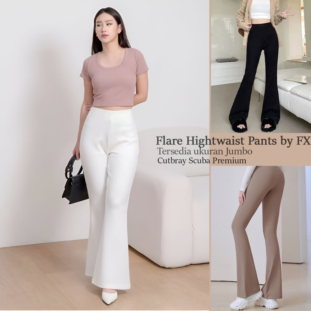 Promo Celana Cutbray Wanita Basic Bahan Scuba Premium Fit & Flare Celana Kerja Highwaist Jumbo Melar