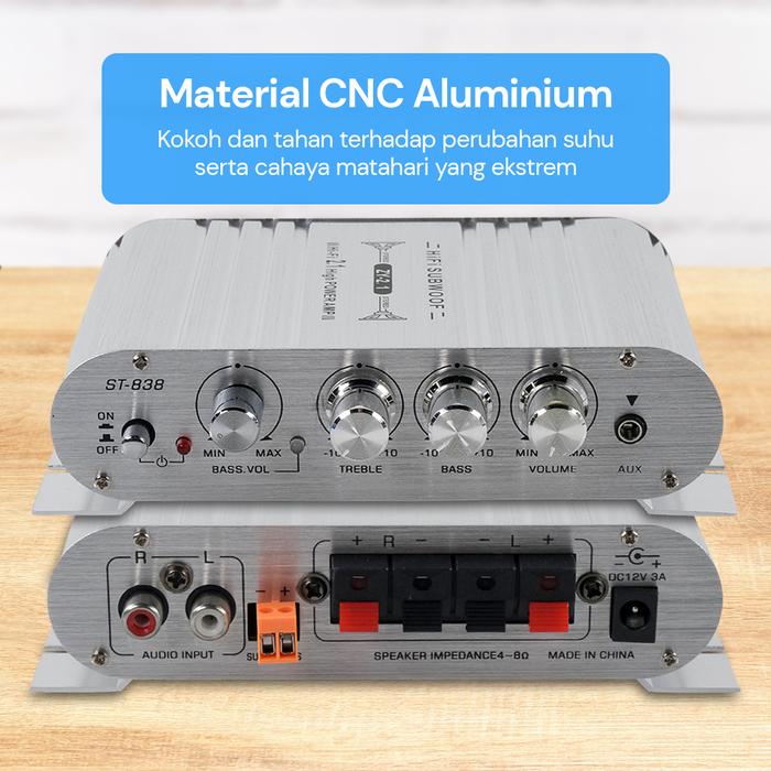 HiFi Stereo Amplifier Treble Bass Booster - ST-838 - ST-838 Abu muda Standar