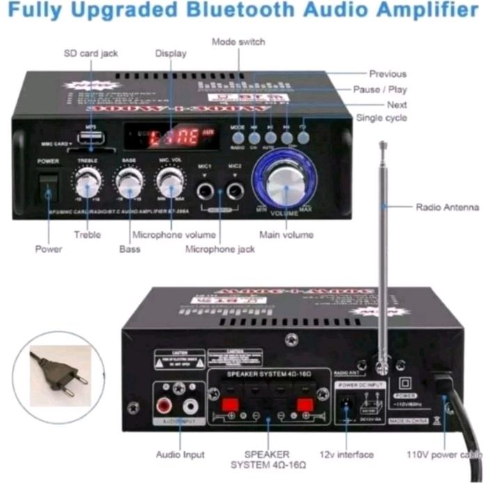 (PCB Warna Merah)Kerndy 298A Bluetooth Audio Amplifier Karaoke Home Theater FM Radio 300W+300W