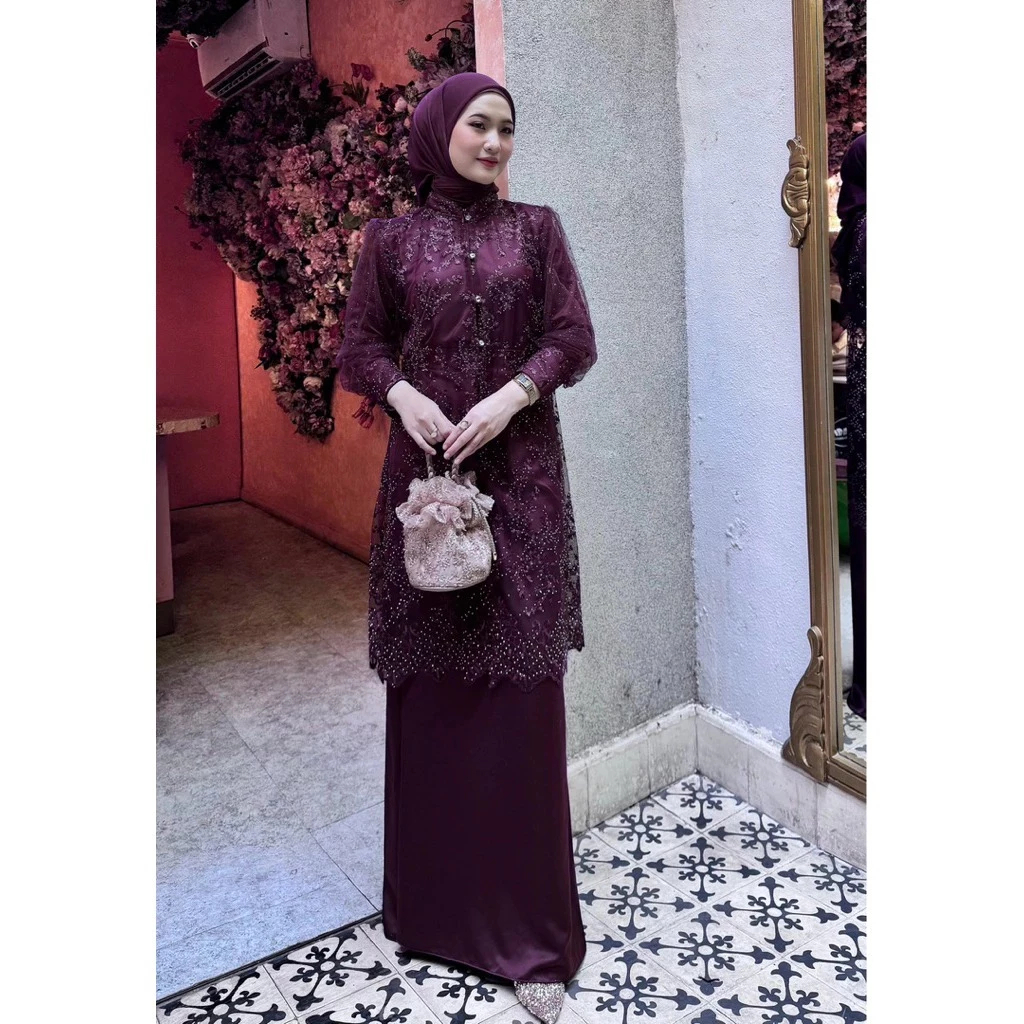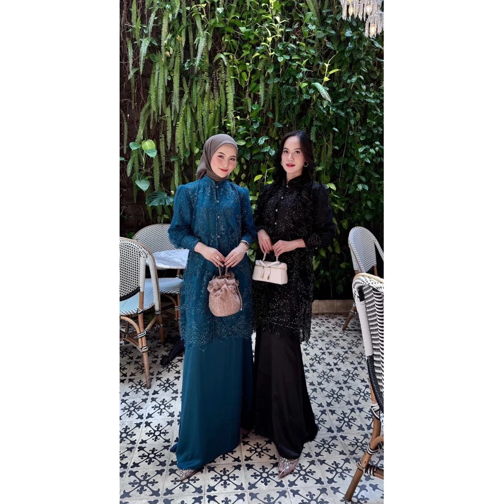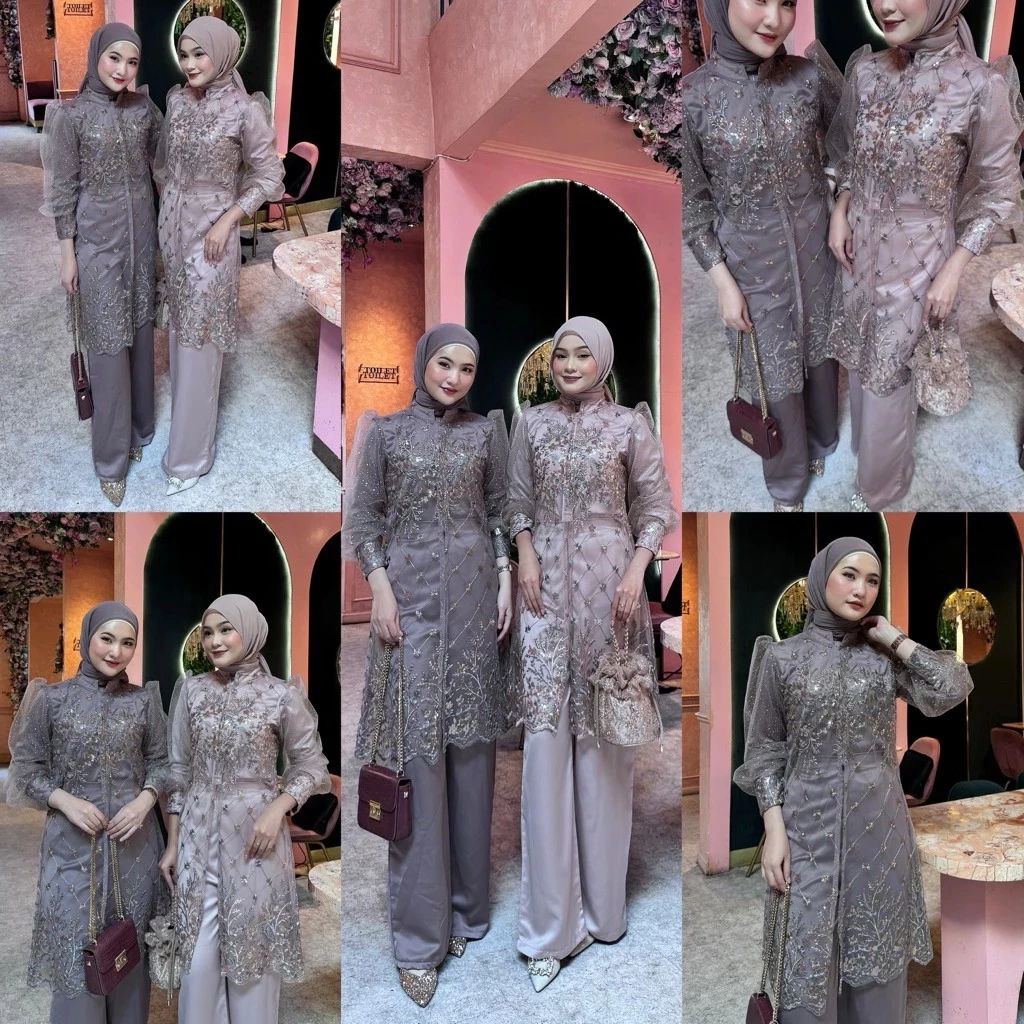 Rania Set Tunik+Celana Oneset Brukat Premium Setelan Kondangan Wanita Terbaru Dress Muslim Pesta