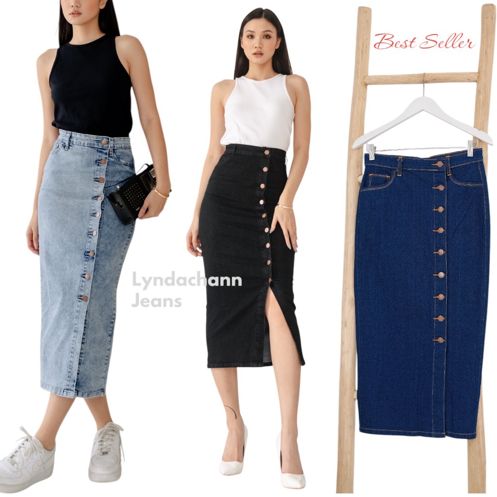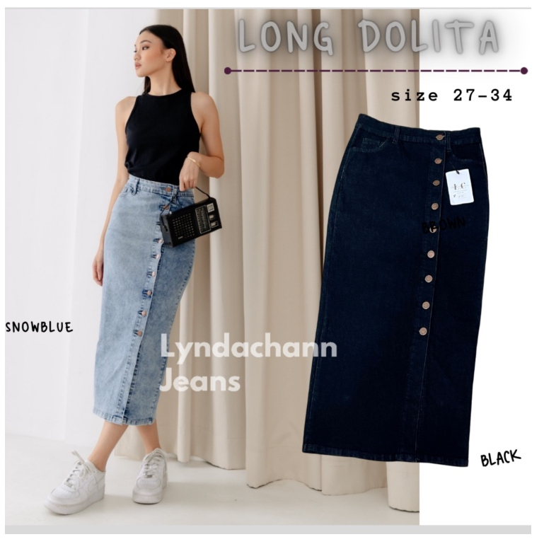 Realpic Rok Jeans Long Dolita Button / Rok Jeans Wanita Premium