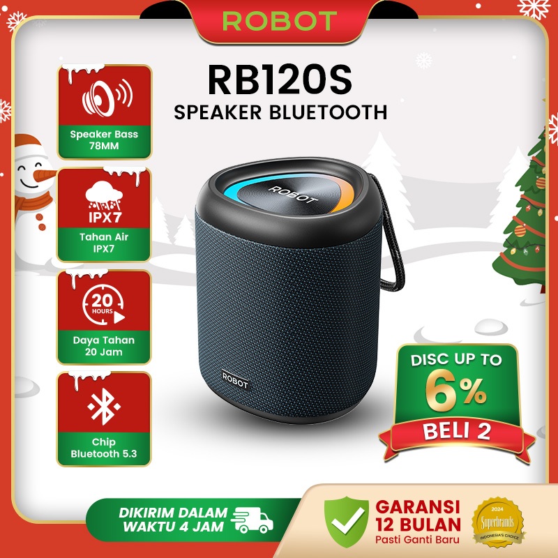 ROBOT Speaker Bluetooth 5.3 15W Super Bass 78mm with RGB Light Speaker Portable Baterai Lithium 4000mAh Interkoneksi Dual TWS Stereo Speaker Tahan Air IPX7 - RB120S