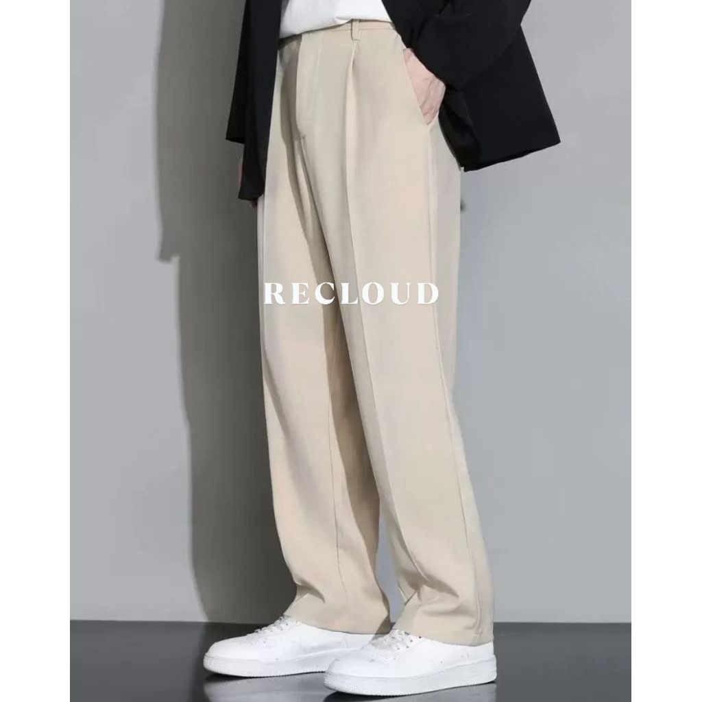 Recloud - Celana Pria Formal Bahan Loose Pants Cream
