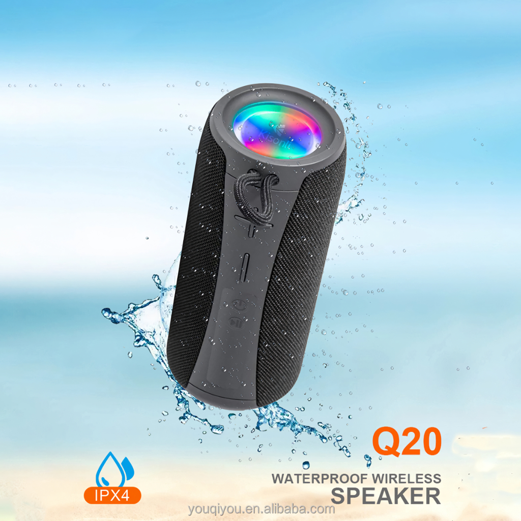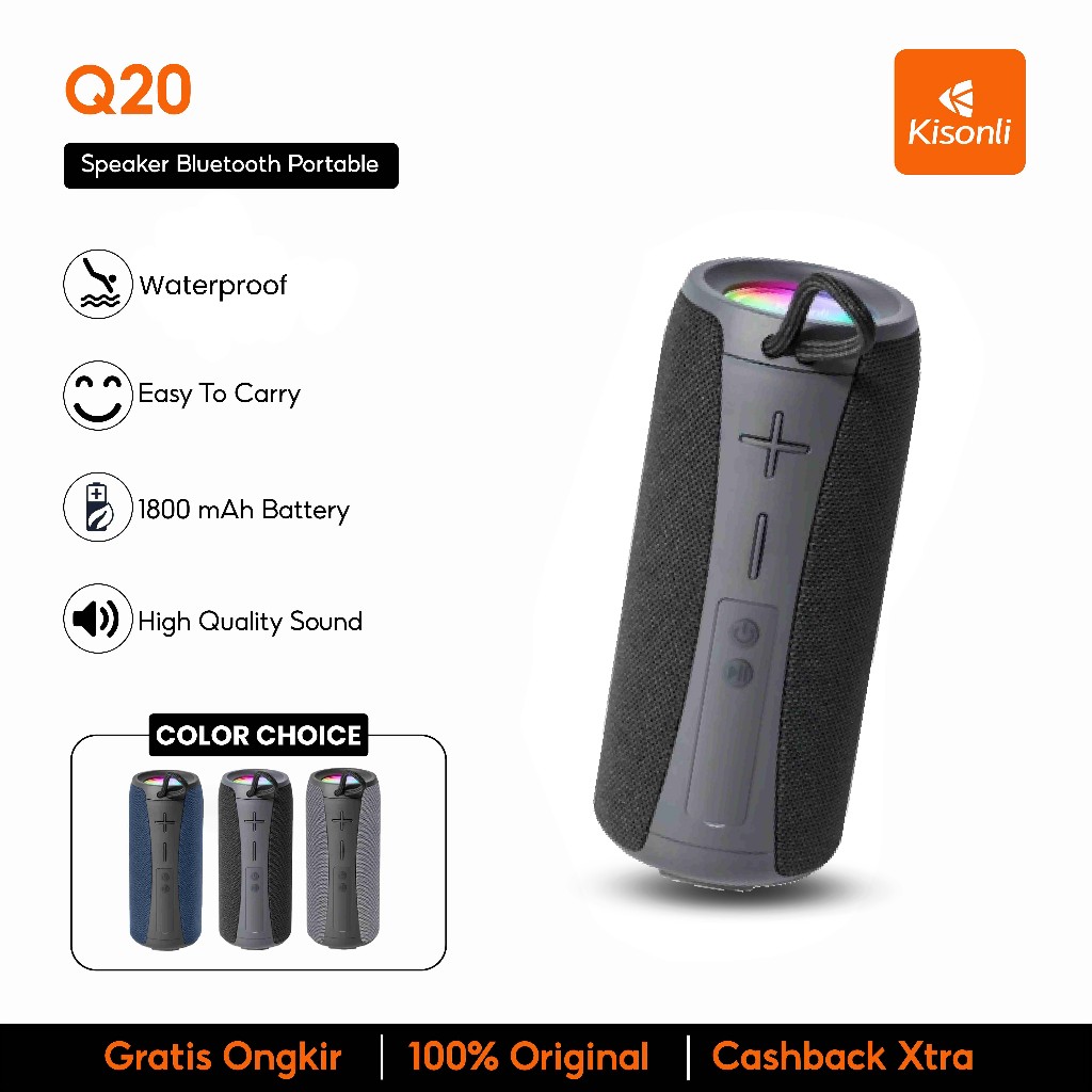 KISONLI Speaker Bluetooth Q20 Waterproof IPX4 With LED Light Bass Portable