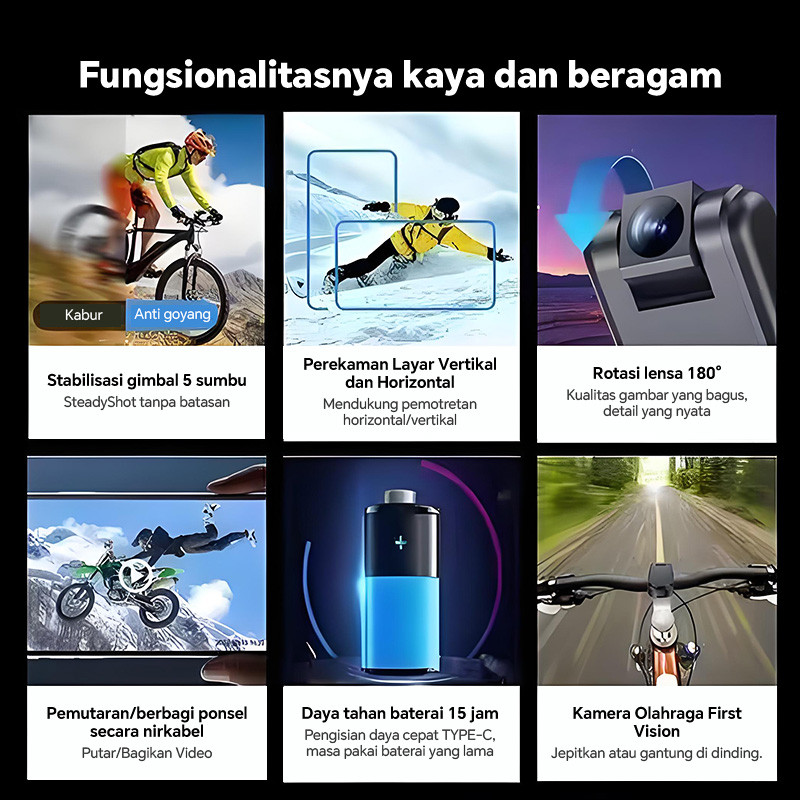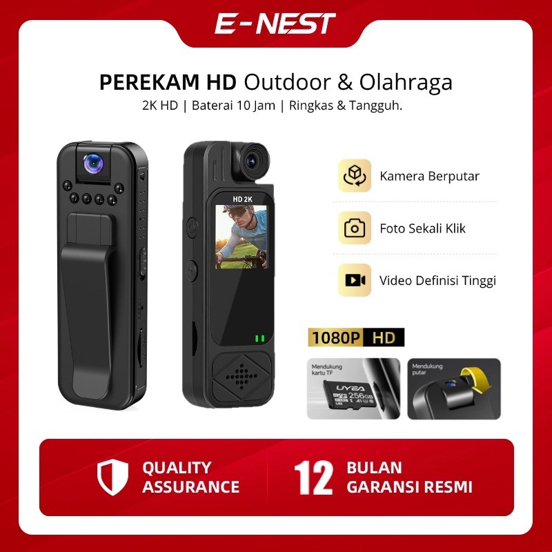 eNest Action Cam 1080P - Kamera Mini Nirkabel dengan Lensa Putar 180°, Night Vision 140°, Baterai 15 Jam, Stabilisasi 5