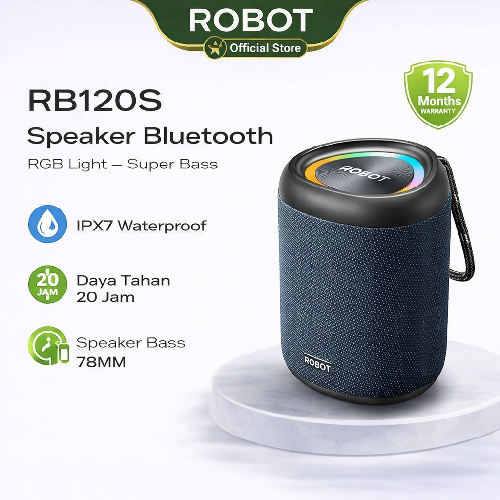 ROBOT Speaker Bluetooth RB120S Portable 15W Audio Super Bass 78mm with RGB Light Speaker IPX7 Waterproof