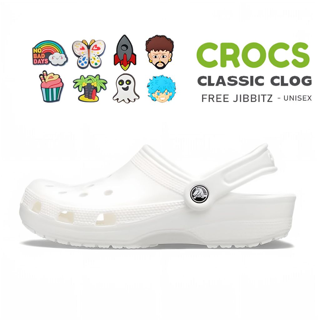Sandal Crocs Dewasa Classic Clog Putih Free Jibbitz