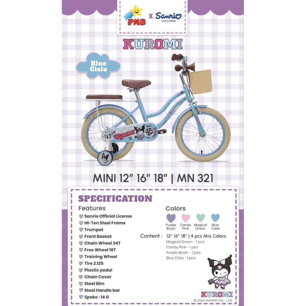 Sepeda Anak Perempuan 12 16 18 Inch Centrum 313 / Pmb Kuromi Mn 311 Keranjang