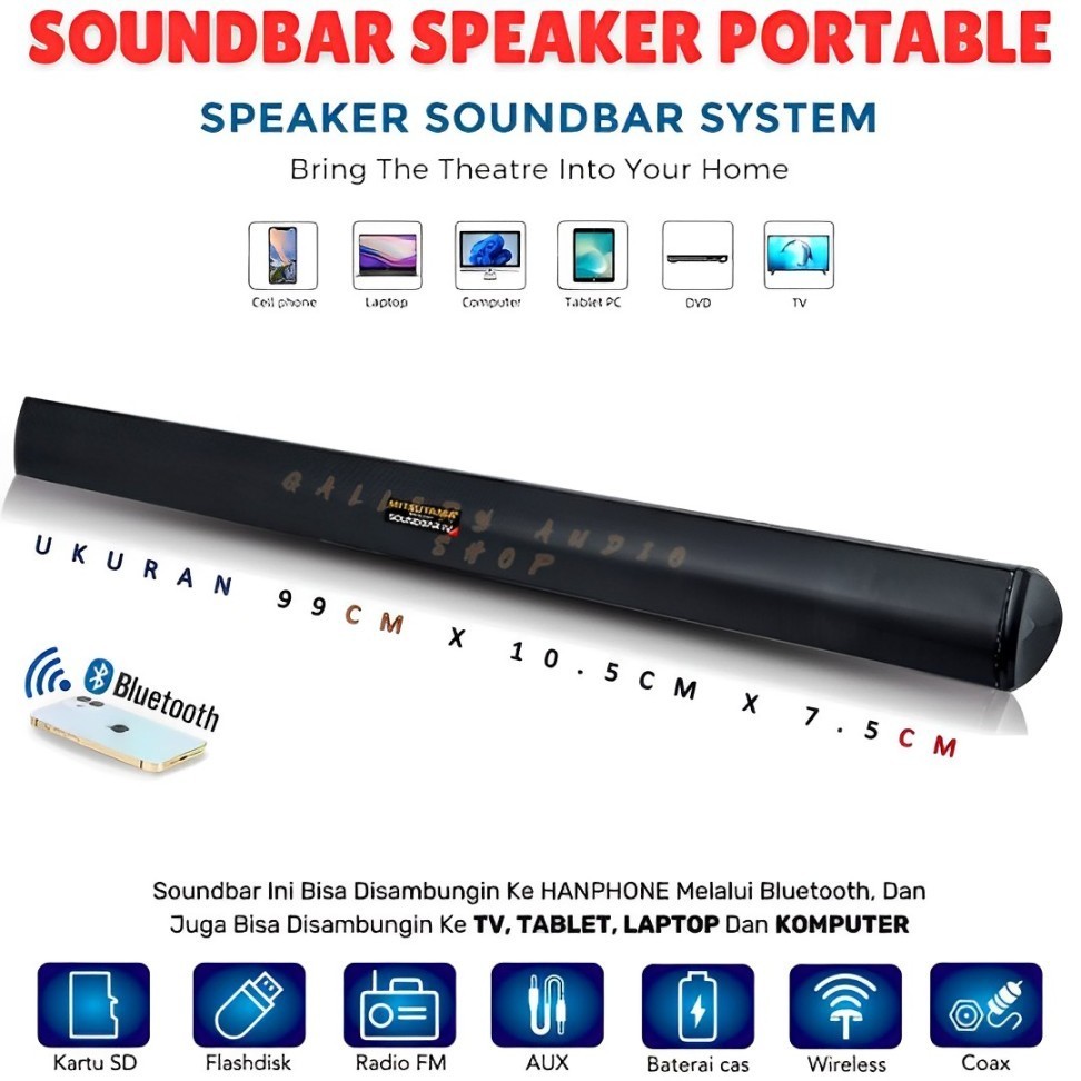 SEMETER Speaker Bluetoth TV Full Bass, Laptop, Komputer, HP SOUNDBAR FLECO F-411A BT Speaker TV