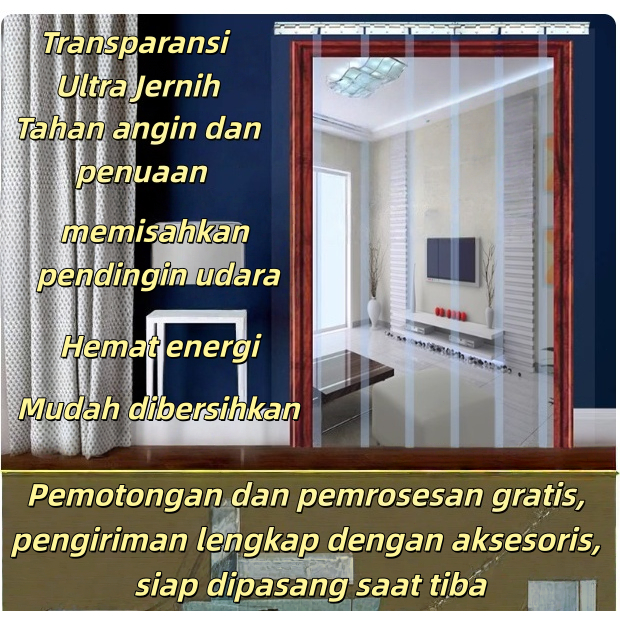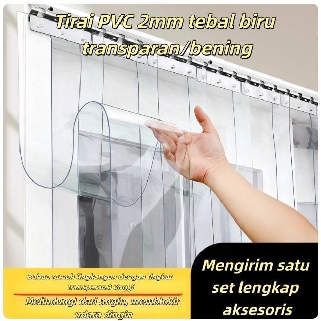 VCology-Tirai PVC 2mm tebal biru transparan/bening, ukuran dapat disesuaikan, dengan braket, siap dipasang.Kirim dalam 2