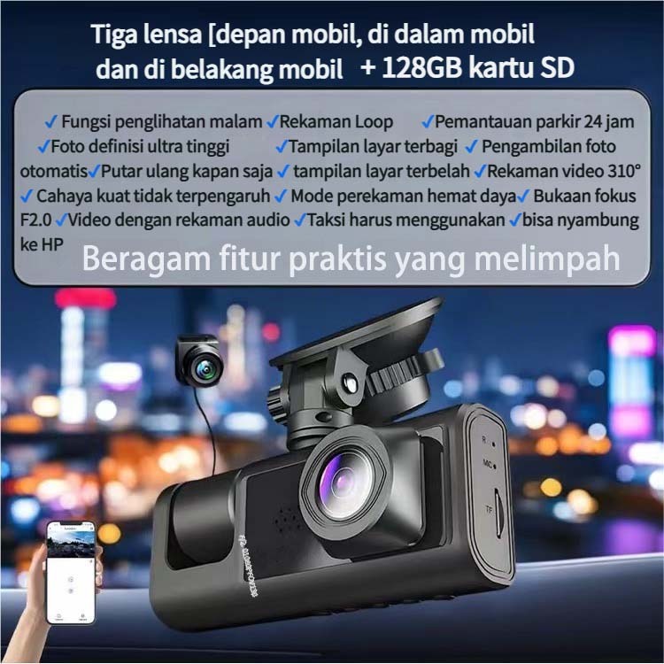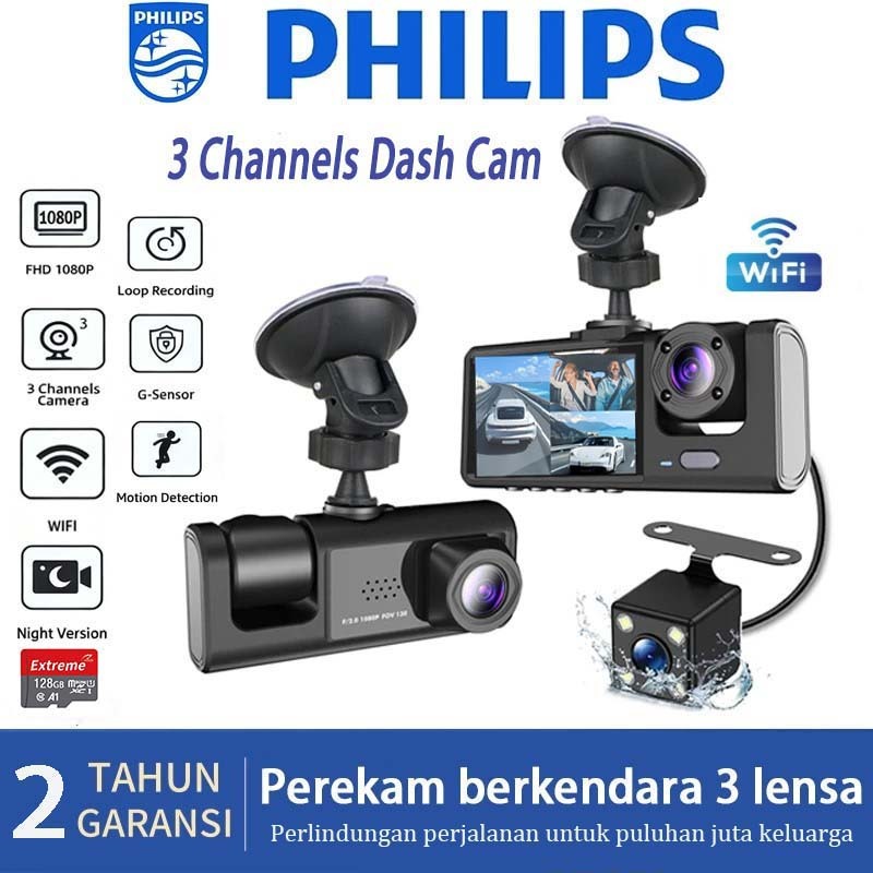 Philips Dashcam 3 Cameras HD Night Vision WIFI Bisa Nyambung Ke HP Pengawasan parkir 24 jam