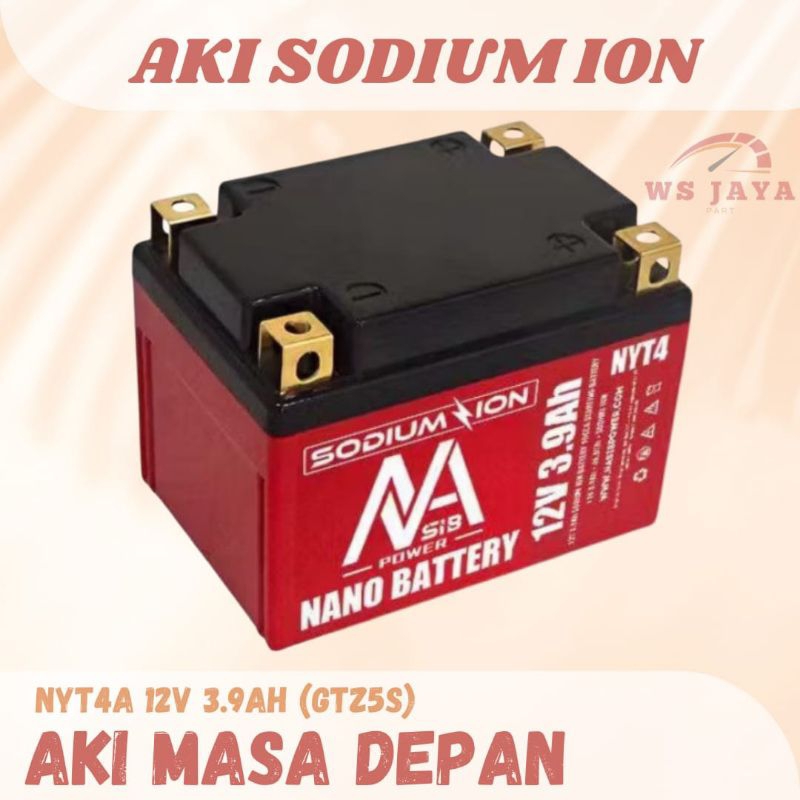 AKI KERING MOTOR SODIUM ION NANO HONDA BEAT SUPRA X125 VARIO 110 MIO J M3 MIO GT XEON SOUL YTX4A 3,9Ah