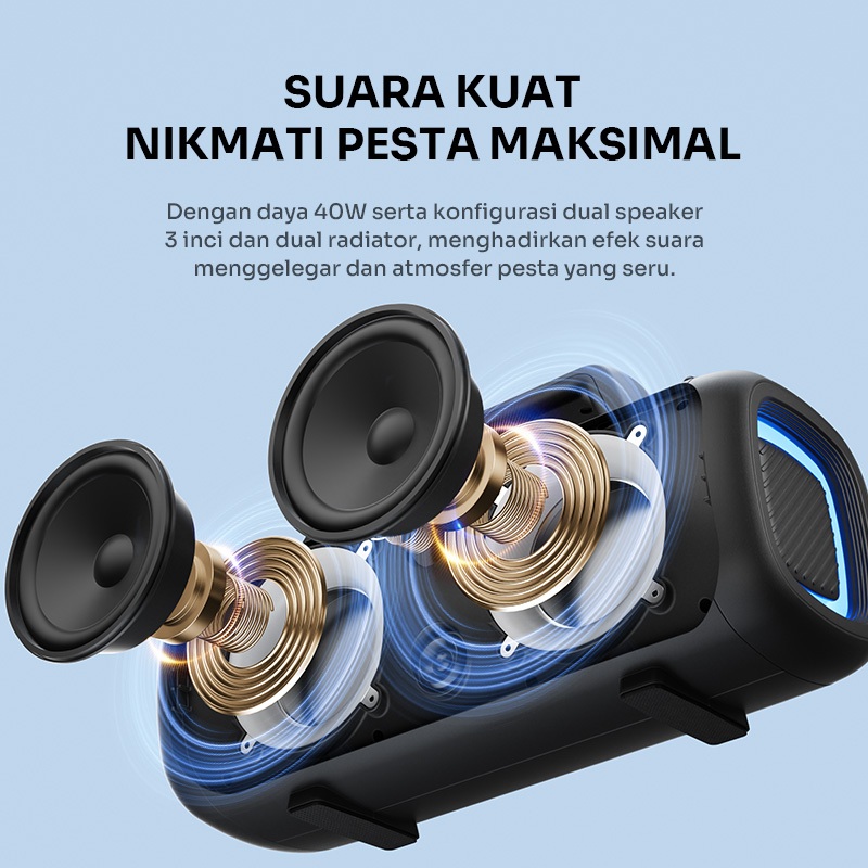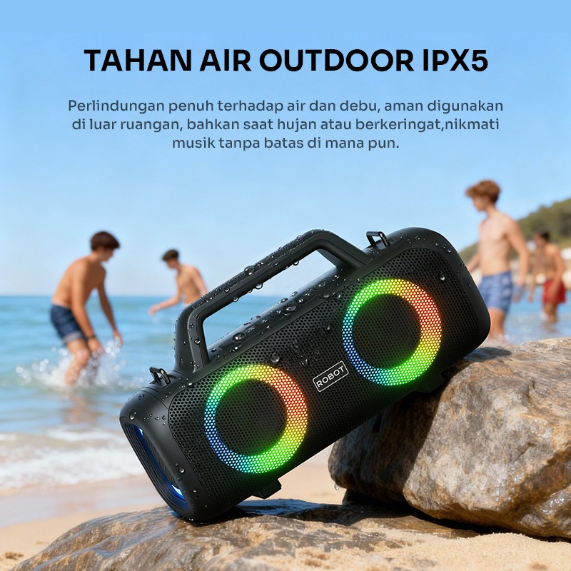 ROBOT Speaker Karaoke RGB RB660 Speaker Bluetooth 6.0 Outdoor Portable 40W Bass RGB Light IPX5 Water Resistant - Garansi 1 Tahun