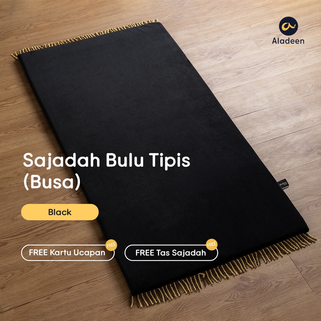 Sajadah Polos Bulu Tipis HITAM Aladeen - Size Dewasa FREE Tas dan Kartu Ucapan
