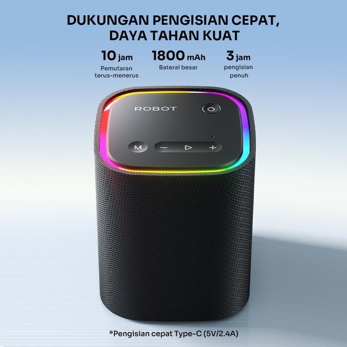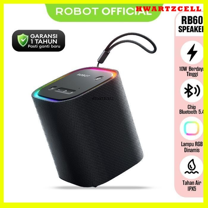 [HWARTZ] ROBOT Speaker Portable Wireless RB60 Bluetooth 5.4 Powerfull Bass 10W with RGB Light Tahan Air IPX5 Pemutaran 10 Jam - original Bergaransi 1 Tahun