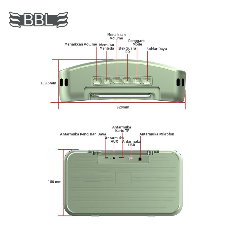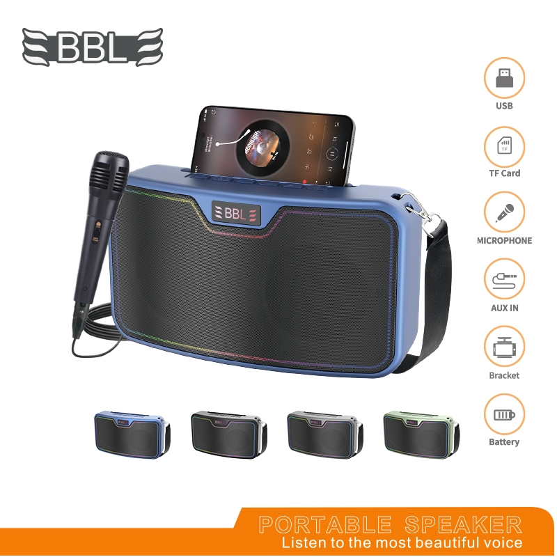 BBL-075 Speaker Bluetooth Super Bass Aktif Portable Karaoke Lampu LED Spiker Subwoofer