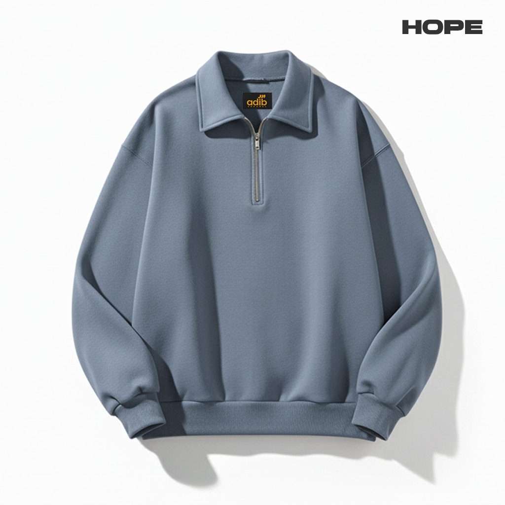 Rugby Half Zipper Polos Crewneck Jaket Sweater Hoodie Zipper Unisex Pria Wanita Warna Denim