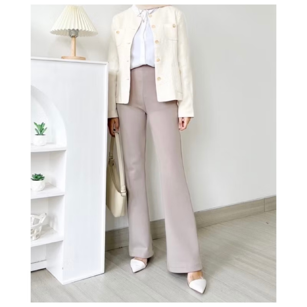 Celana Fit And Flare Pants Cutbray Scuba Pinggang Highwaist Bahan Stretch Melar Elastis Kulot Cutbray Scuba