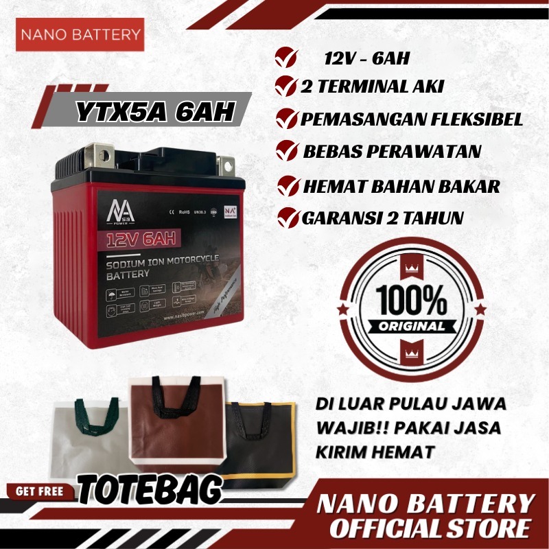 NANO BATTERY Aki Motor Sodium Ion 12V 6Ah Aki Motor YTX5A 12V 6Ah Aki Kering Garansi Resmi Dari Pabrik Sendiri Motorcycl