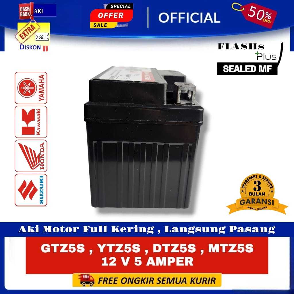 #GARANSI GELL Aki Motor Honda Supra X 125 Aki Kering Accu Kering MF GTZ5S Baterai GS (GXS) Metic
