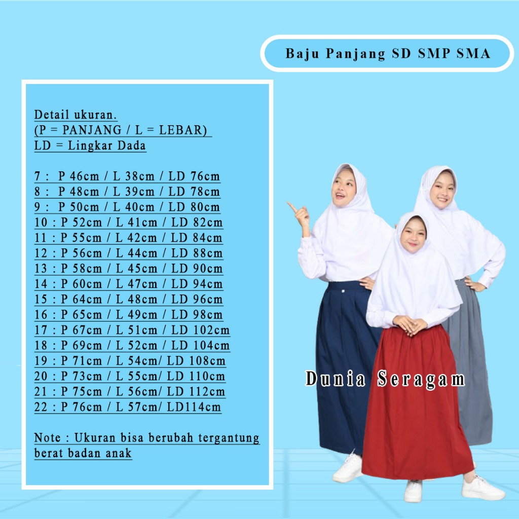 Baju Kemeja Hem Seragam Sekolah SD SMP SMA Putih Lengan Panjang Bed Bodir Bahan Premiun Katun Oxford