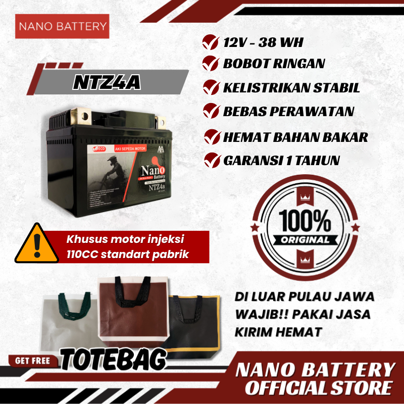 NANO BATTERY Aki Motor Sodium Ion Aki Motor NTZ4A Aki Motor 110CC Injeksi Aki Motor Kering