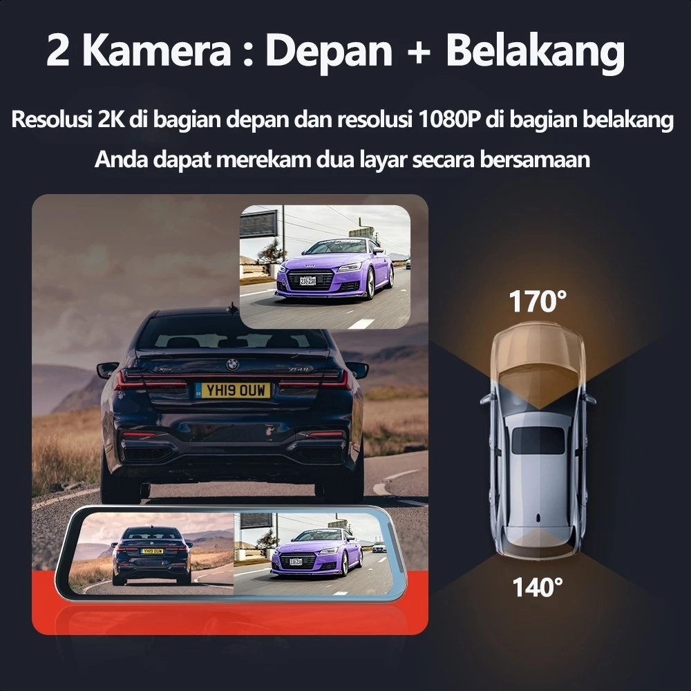SCUDOS Dashcam Mobil 2K HD 10 Inch Layar Sentuh IPS Night Vision Dual Lens Perekaman Loop 24 jam