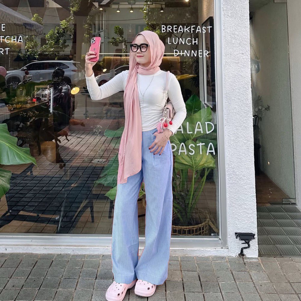 City Pants | Celana Panjang Wanita Kantor Kerja Kuliah Tidur Santai Motif Garis Kulot Pinstripe