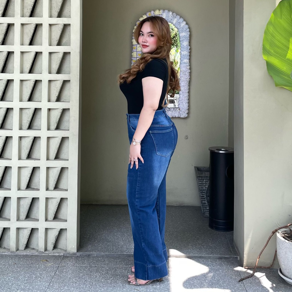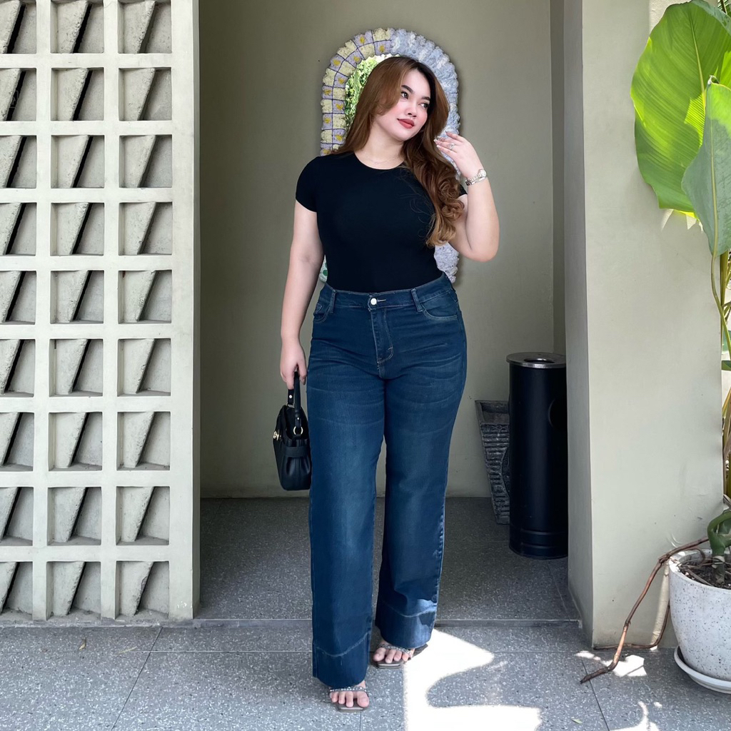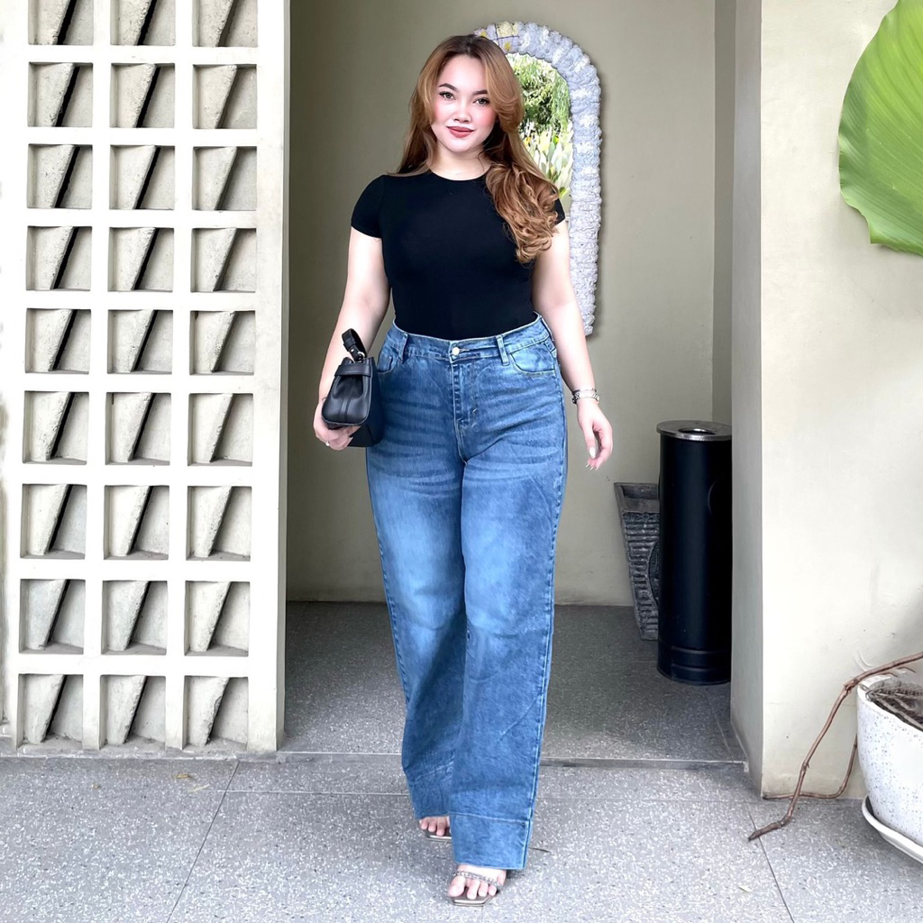 Savirni - Celana Loose Jeans Lipat Wanita Korean Style - Straight Jeans Baggy Stretch Soft - Celana Panjang Wanita