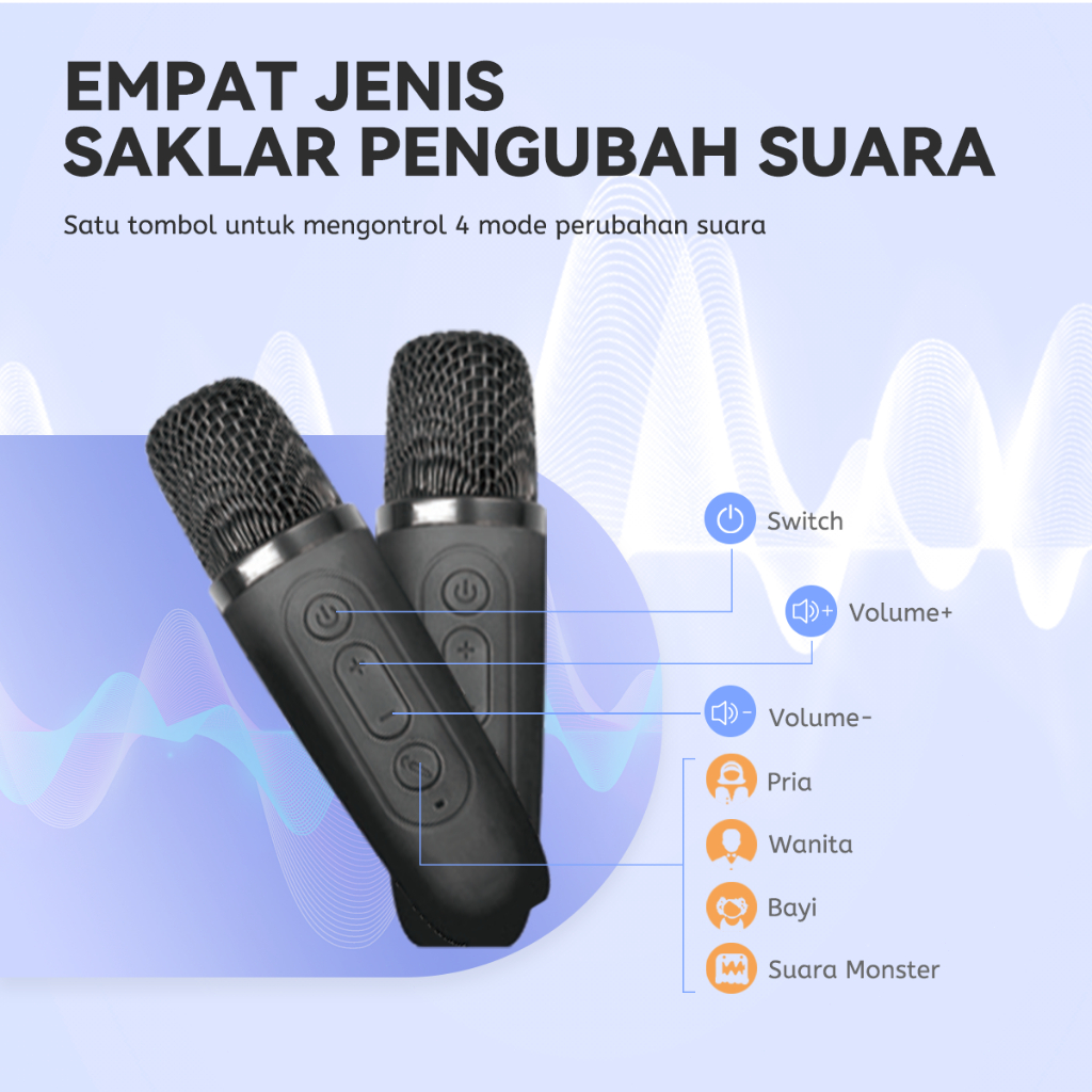 MAIKET Speaker Karaoke Bluetooth 2 Mic Wireless Full Bass 360° LED RGB Untuk Party Outdoor Home