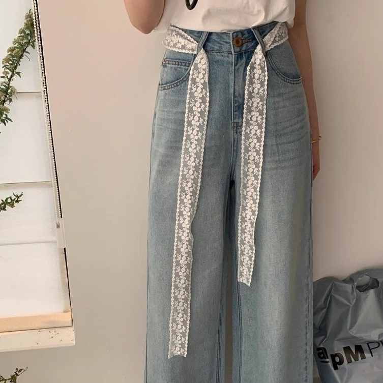 GDTIMA Jeans Wanita Highwaist Celana Pants Kulot Jeans Celana Jeans Terbaru Bunga Renda