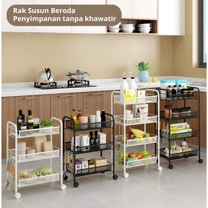 Rak Troli Susun Rak Roda Rak Lantai Beroda Rak Ruang Tamu Rak Penyimpanan Dapur Stainless