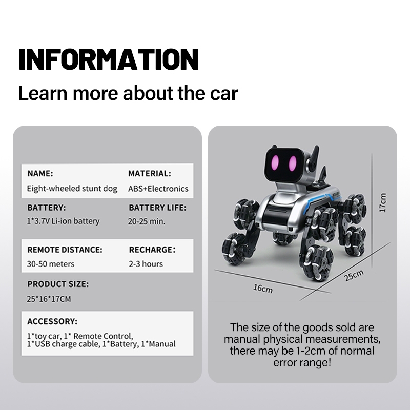 New Children's Remote Control Car Eight-Wheel Stunt Mechanical Dog Electric Watch Induction Intelligent Robot Toy