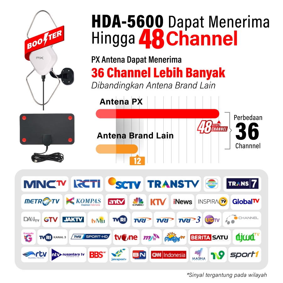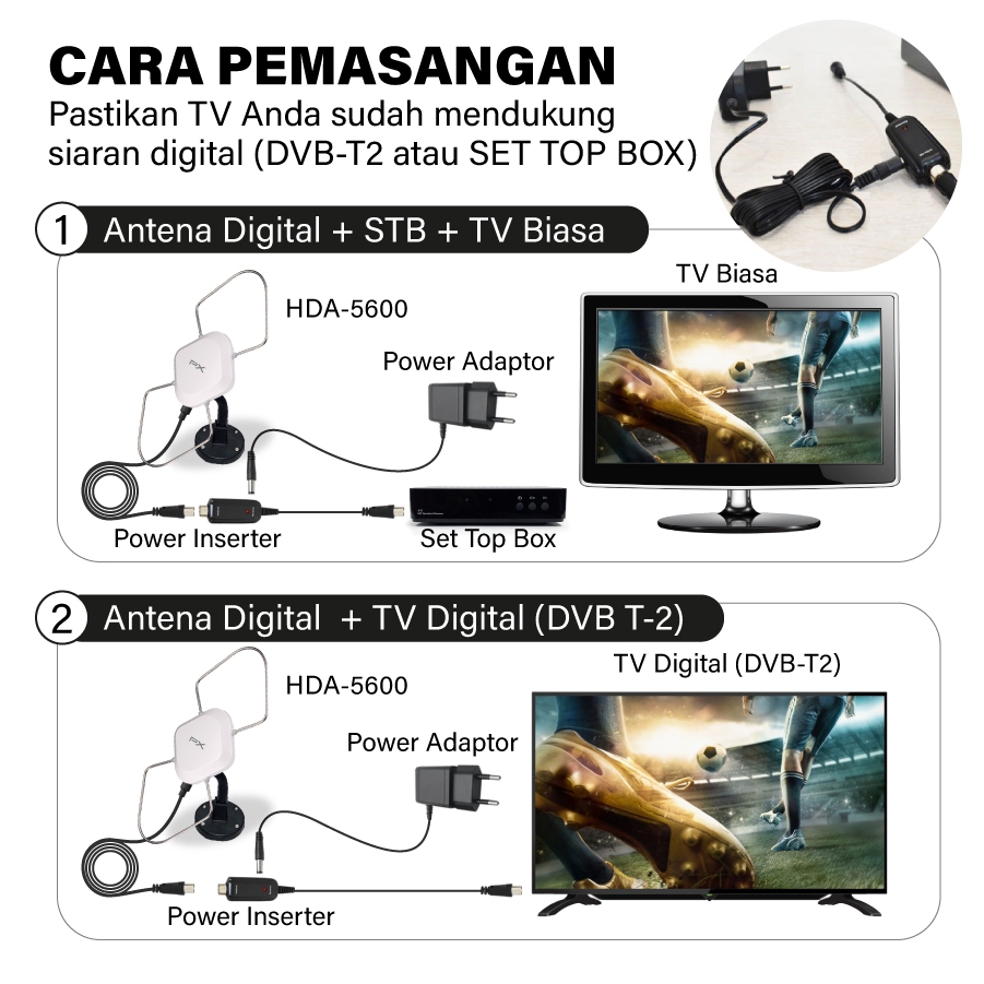 Antena TV Digital Indoor/Outdoor + Kabel 12 Meter Booster PX HDA-5600 Sama dengan HDA-5000