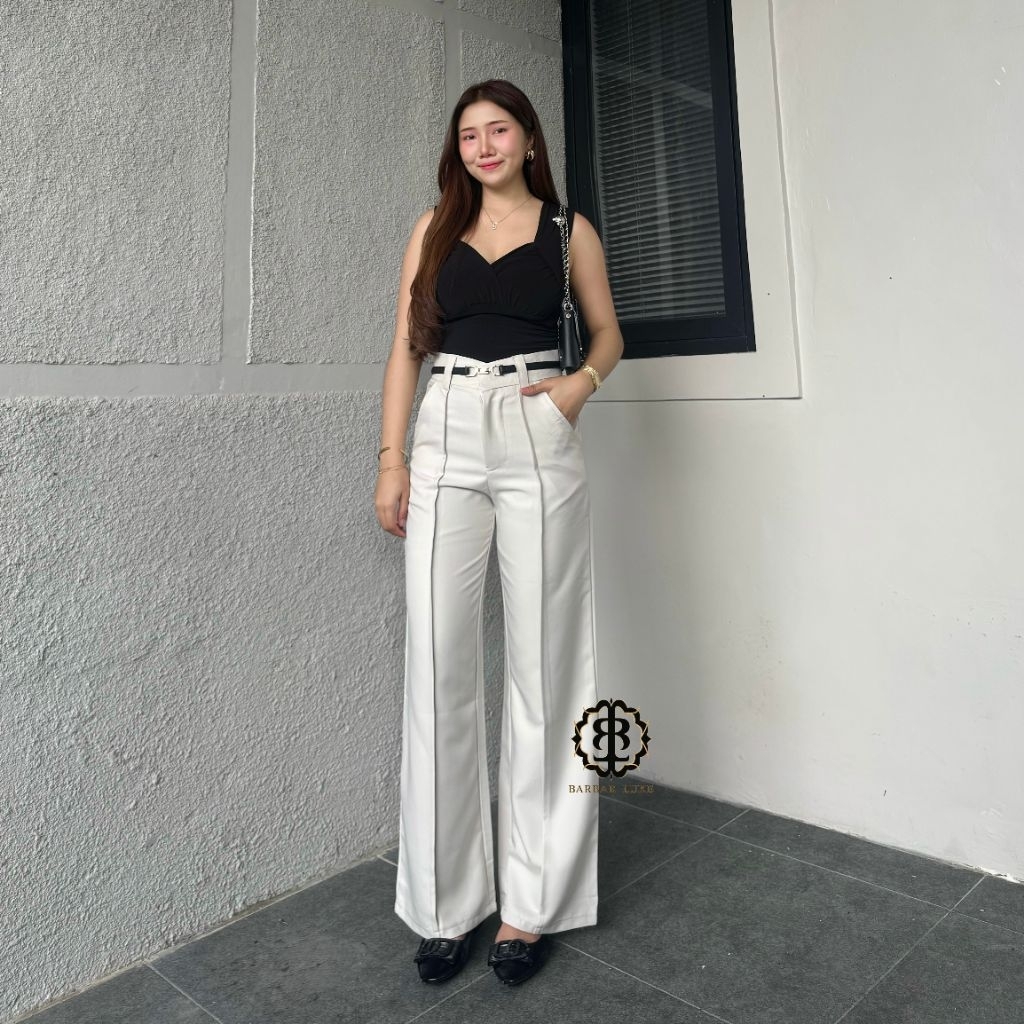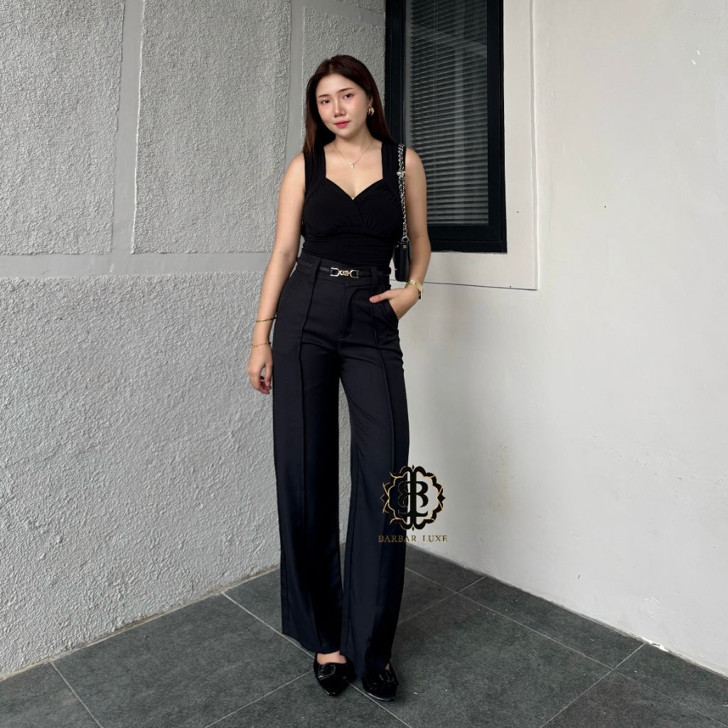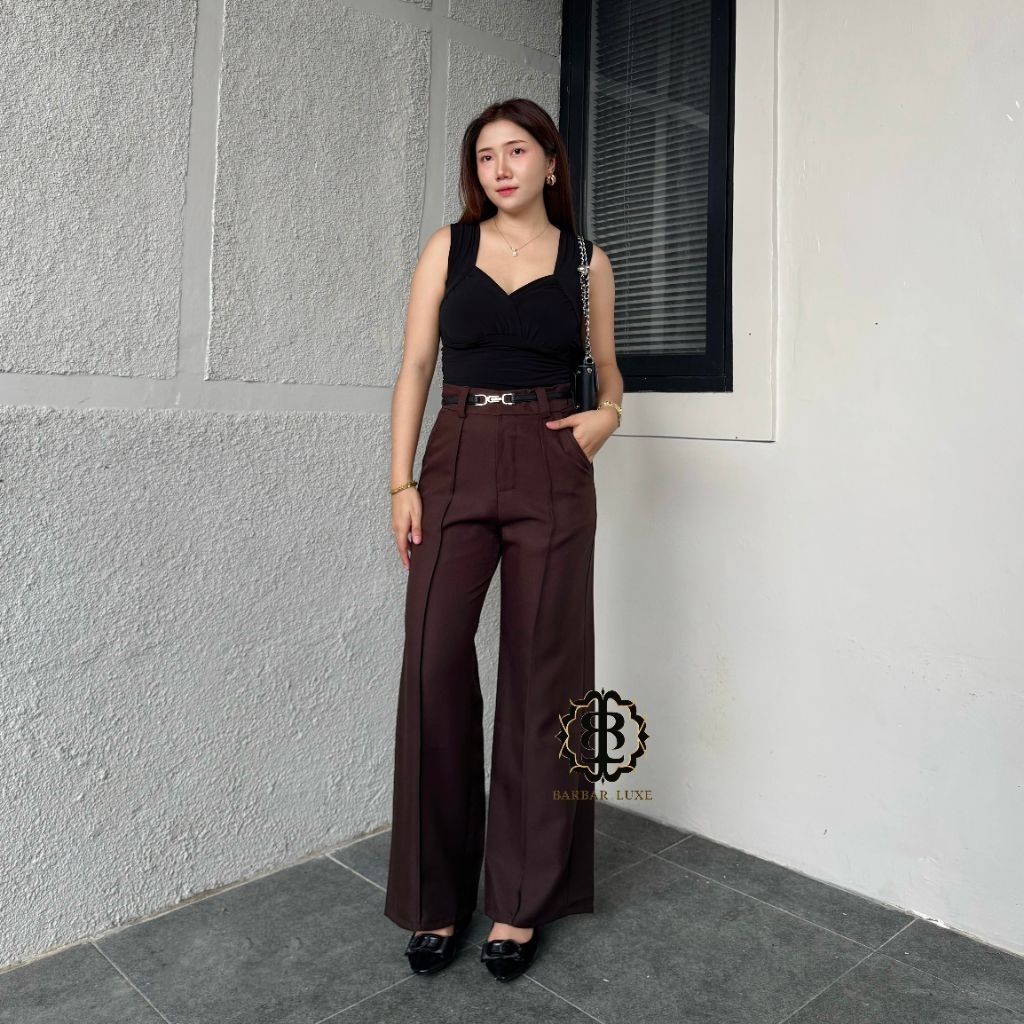 Chandra Highwaist Pants Straight Loose | Celana Kulot Highwaist Loose pants Wanita Dewasa Panjang Wool Jaguar