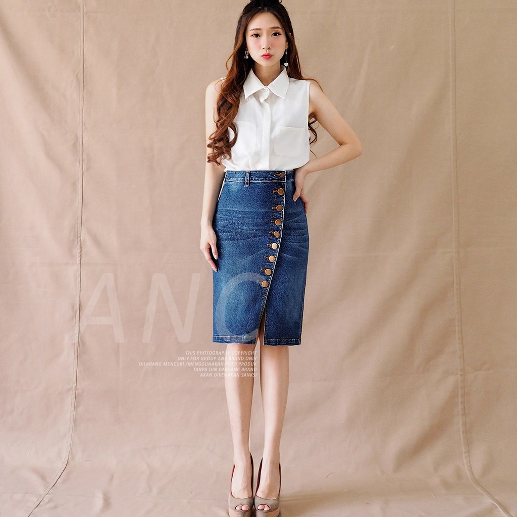 Skirt Rok Midi Jeans Terlaris (Uk. 27-34)