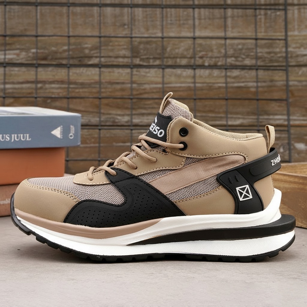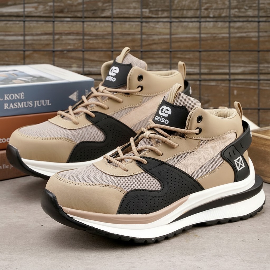 Sneakers Sporty Casual Pria Hitam, Ringan, Fashionable Dengan Extra Perlindungan Warna Hitam Dan Coklat