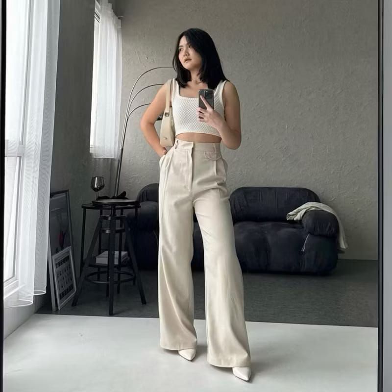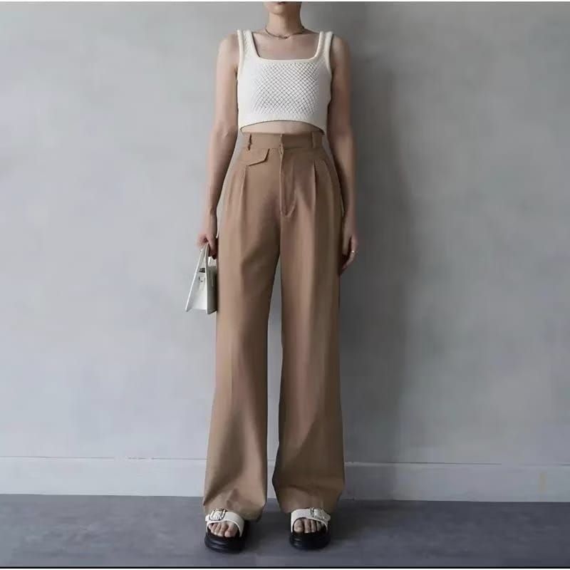 ORO PANTS Celana Wanita Highwaist Loose Pants Korean Style Bahan knit Premium