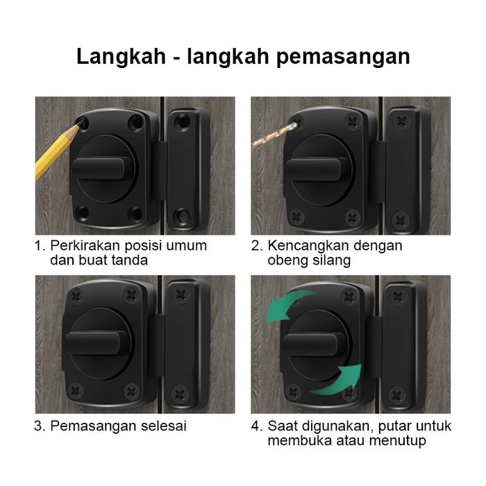 Kunci Anti Maling Grendel Putar Zink Alloy Slot Pintu Geser Untuk Berbagai Pintu & Jendela - Hitam