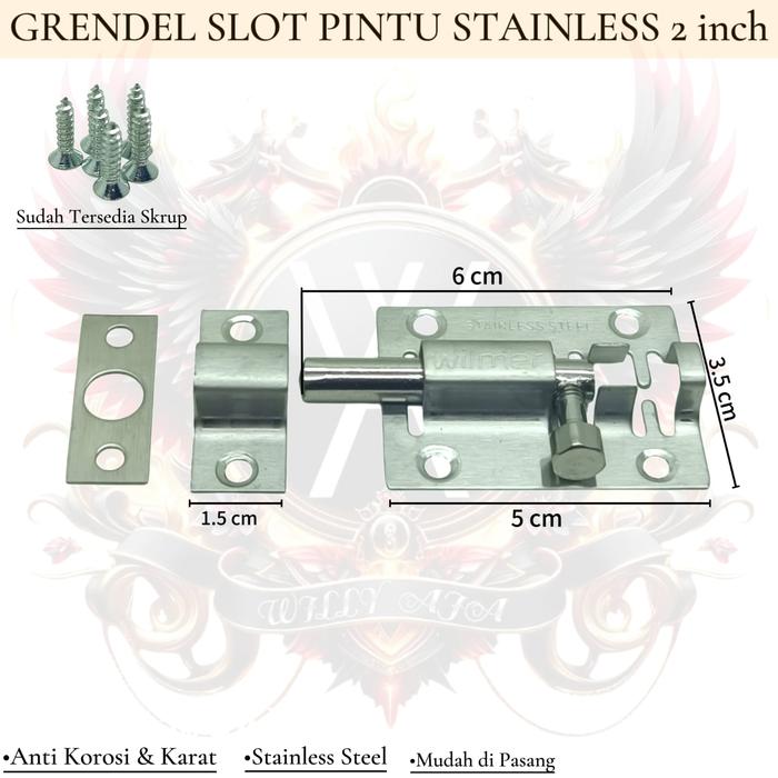 Grendel Slot Pintu Stainless Steel 2 Inch