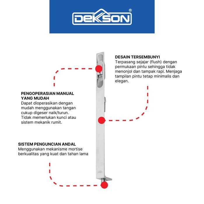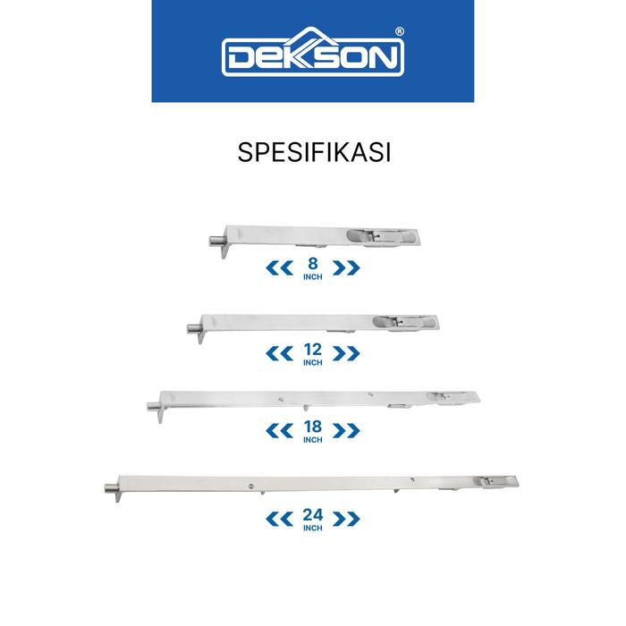 DEKKSON Flush Bolt Grendel Pintu Stainless Steel FB 050 - 8 inch Abu muda