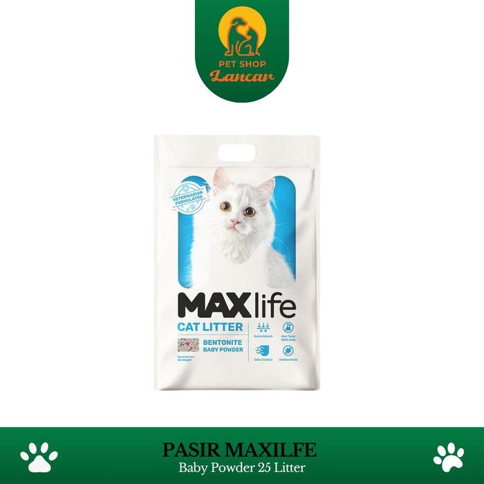 MAXLife Cat Litter 25 Liter - Pasir Kucing Wangi Gumpal Kuat Anti Bau - Baby Powder