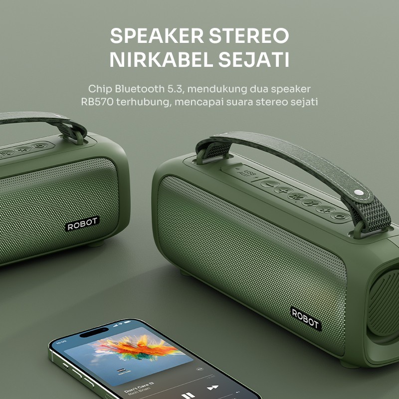 ROBOT RB570 Speaker Bluetooth 5.3 Portable Bass Boost Ipx5 Rgb Lights