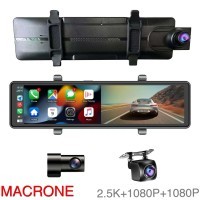 KAMERA DASHCAM DVR SPION MACRONE 3 CHANNEL 2.5K+1080P+1080P SUPPORT CARPLAY & ANDROID AUTO