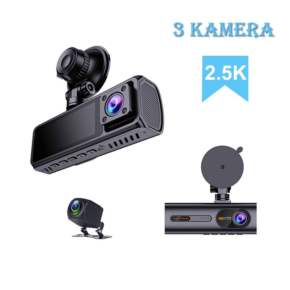 F5 Dashcam Mobil 2.5K 3 Camera Dashcam Wi-Fi Kamera Mobil 64G Kamera inframerah di dalam mobil Layar 3,16 inci Type-C