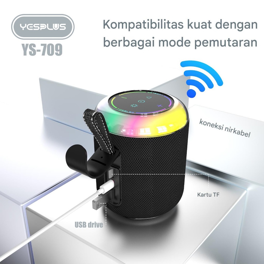 Speaker Bluetooth YESPLUS YS-709 with RGB Light Subwoofer Portable Bluetooth 5.3 Sound Stereo Bass